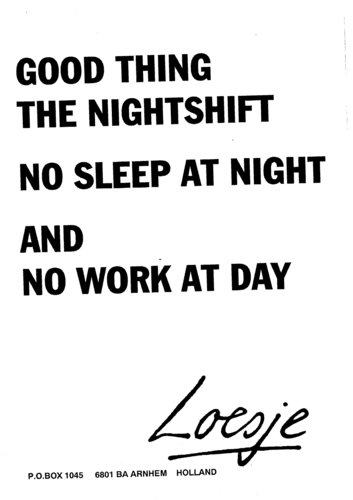 GOOD THING THE NIGHTSHIFT NO SLEEP AT NIGHT AND NO WORK AT DAY