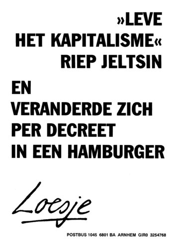 "Leve het kapitalisme" riep Jeltsin en veranderde zich per decreet in een hamburger