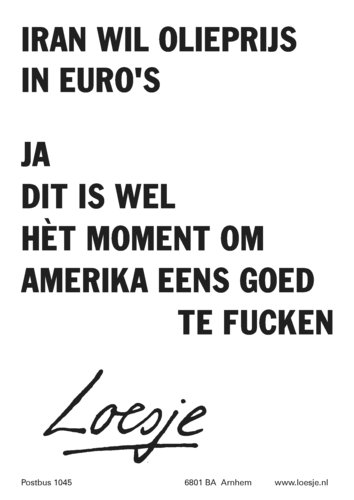 Iran wil olieprijs in euro's; ja dit is wel hèt moment om Amerika eens goed te fucken