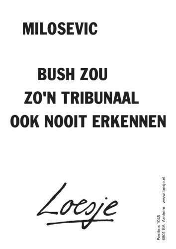 Milosevic; Bush zou zo'n tribunaal ook nooit erkennen.