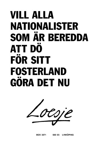 vill alla nationalister som är beredda att dö för sitt fosterland göra det nu