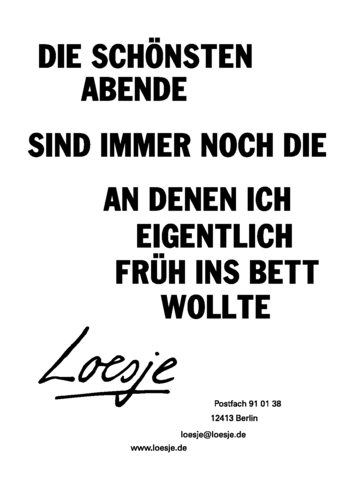 DIE SCHÖNSTEN ABENDE / SIND IMMER NOCH DIE / AN DENEN ICH EIGENTLICH FRÜH INS BETT WOLLTE