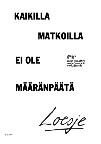 KAIKILLA MATKOILLA EI OLE MÄÄRÄNPÄÄTÄ