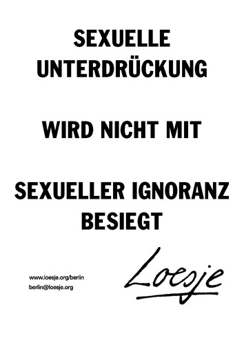 Sexuelle Unterdrückung / wird nicht mit sexueller Ignoranz besiegt