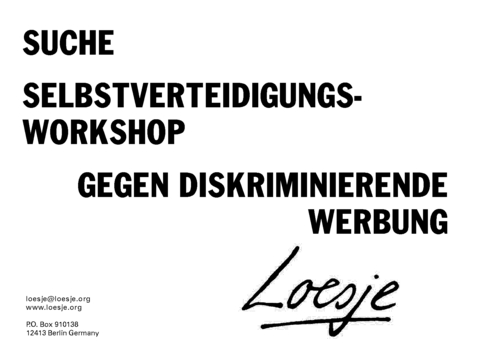 SUCHE / SELBSTVERTEIDUNGUNGSWORKHOP GEGEN DISKRIMINIERENDE WERBUNG
