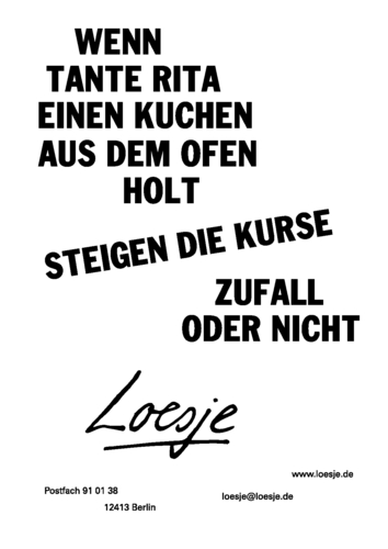 WENN TANTE RITA EINEN KUCHEN AUS DEM OFEN HOLT / STEIGEN DIE KURSE / ZUFALL ODER NICHT
