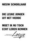 Loesje vindt het leuk om de posters op straat en achter de ramen te zien hangen.